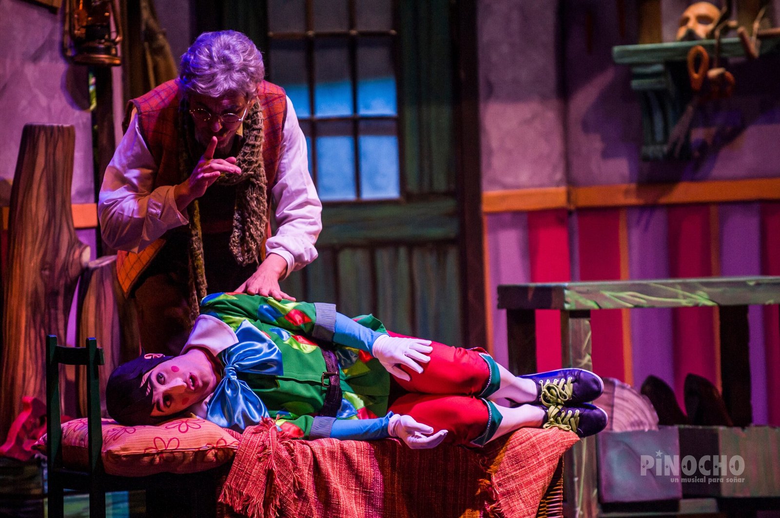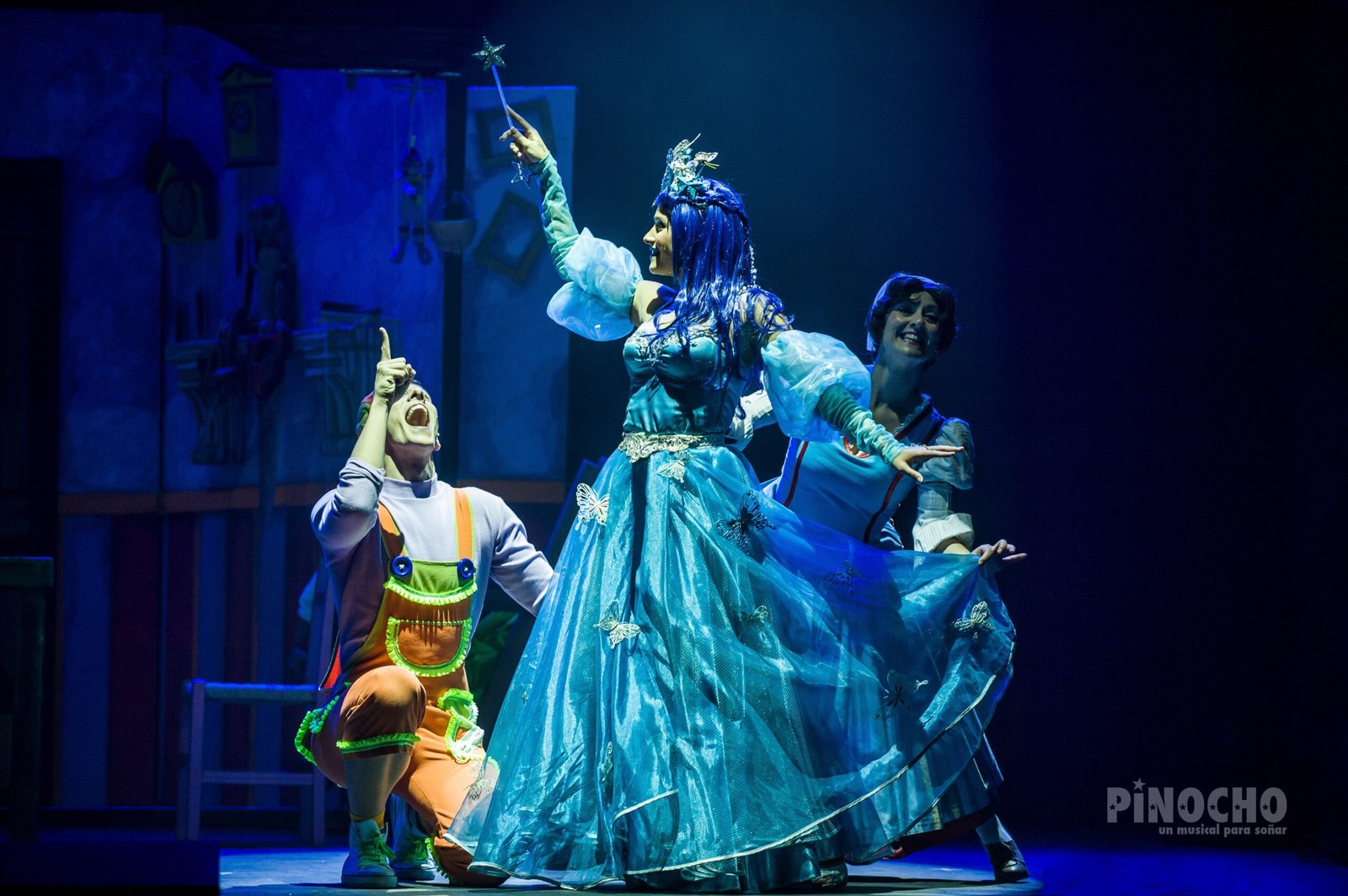 Pinocho es el universo sonoro del teatro musical adaptado a la esencia del cuento de siempre. La curiosidad de Pinocho por conocer el mundo que le rodea lo apartará del camino de la escuela y lo llevará al teatro de marionetas de Stromboli, a la feria, al fondo del mar, e incluso al estómago de una ballena glotona. Un sinfín de peripecias en las que Pinocho contará con la ayuda de sus amigos Grillo y Hada, aunque también tendrá que esquivar las trampas de los malvados Zorro y Gata.